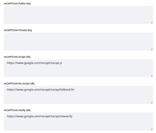 This page contained a number of CAPTCHA related settings, including the URLs used by the reCAPTCHA engine: