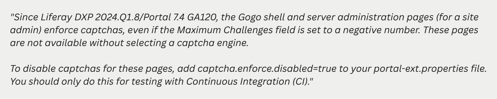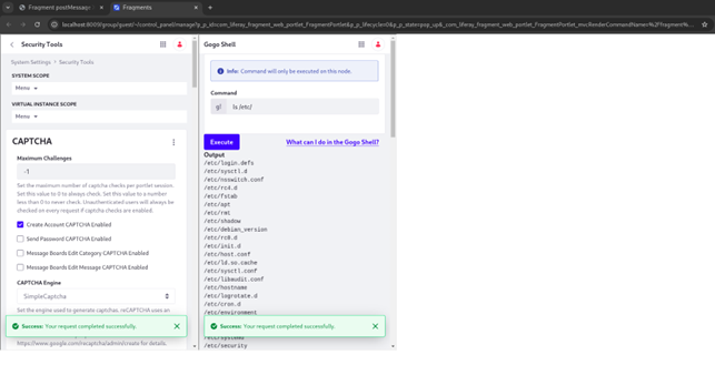According to Liferay, this Gogo shell CAPTCHA bypass technique was fixed in Liferay DXP 2025.Q2.0 and has been fixed on the master branch of Liferay Portal.