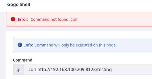 It was noted that the Gogo shell also supported the Eclipse Equinox “exec” and “fork” commands, meaning that it was possible to execute commands that were not directly supported. For example, it was possible to use the “exec” command to invoke the “curl” command, as shown below: